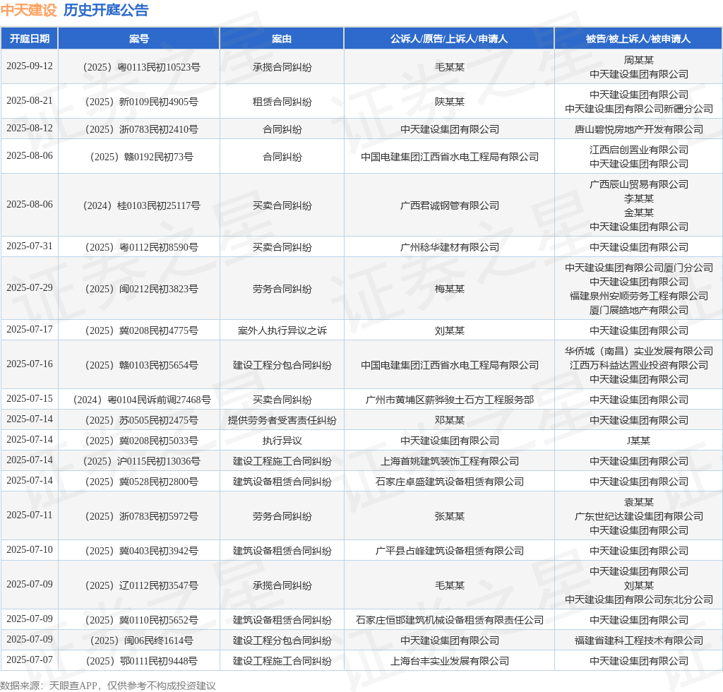 本站消息,根据天眼查APP显示,近日公布了一则中天建设集团有限公司作为原告/上诉人的开庭公告,详细内容如下: